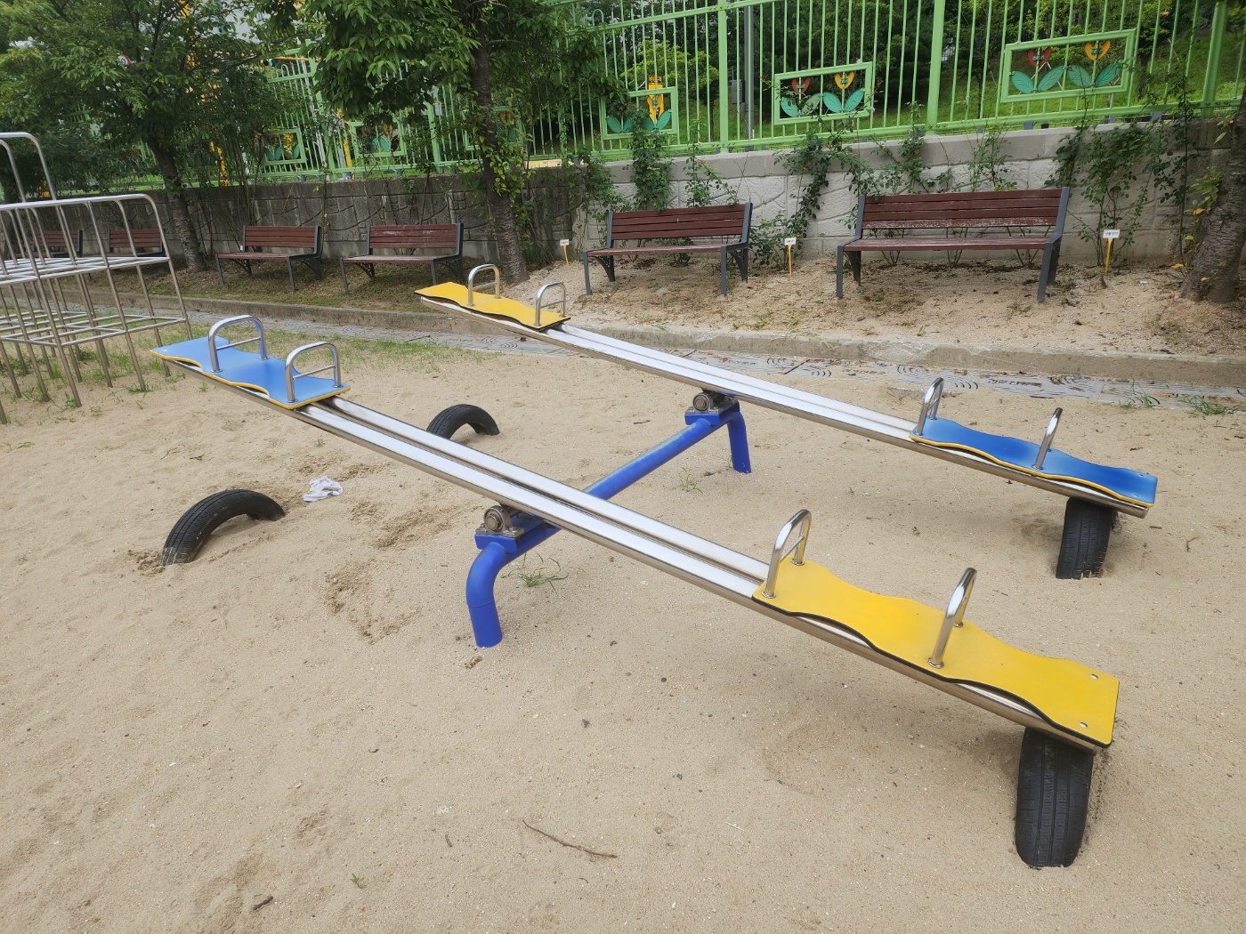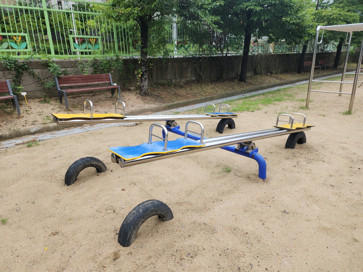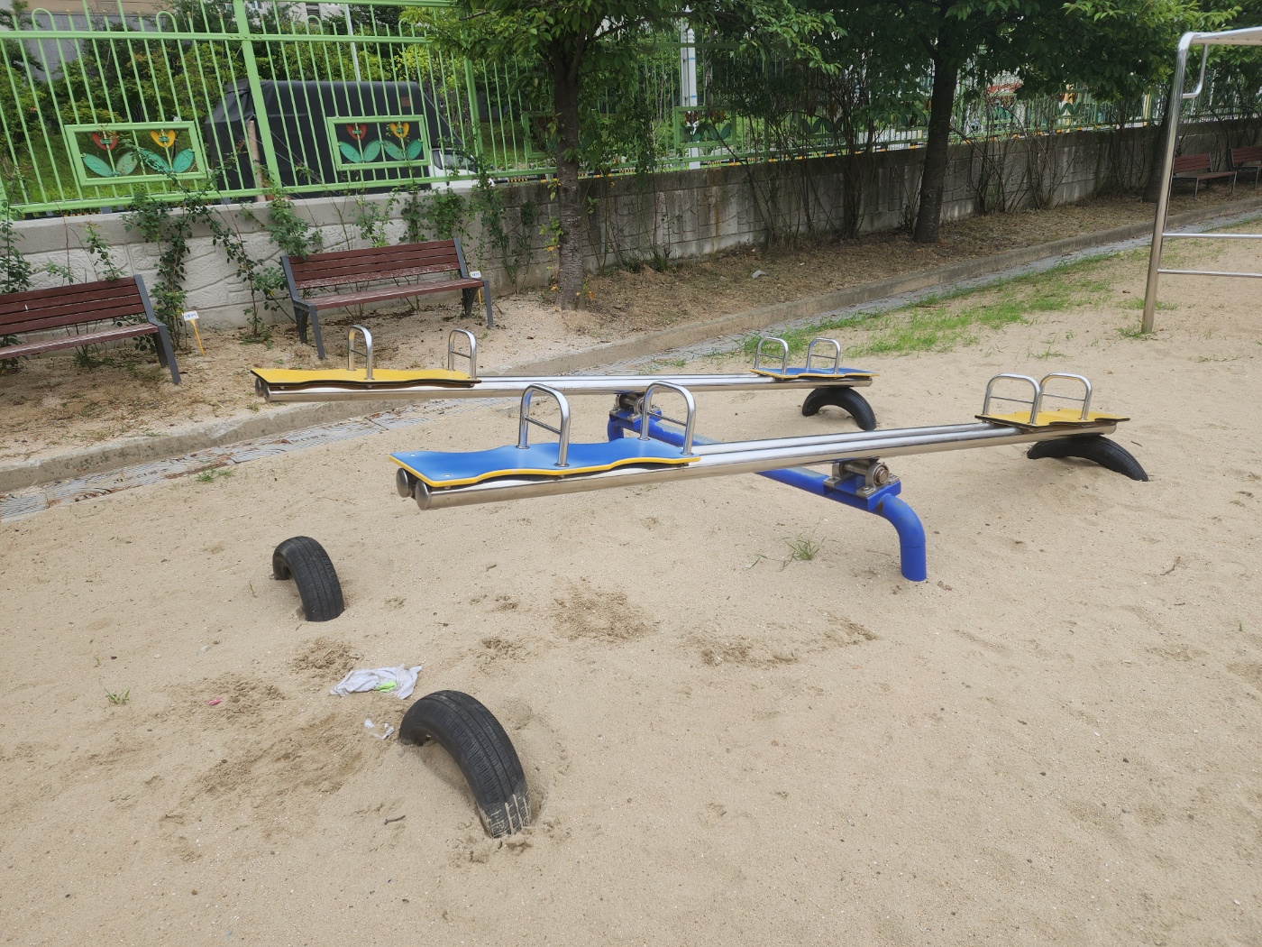 교체 후 아이들이 시멘트 양생기간 동안 시소를 사용하지 않도록